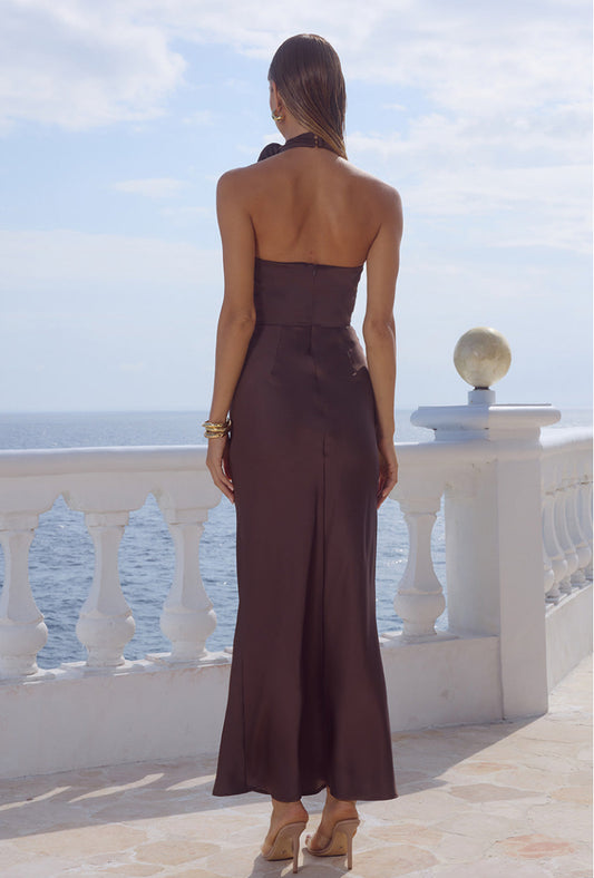 Estelle Cowl Halter Maxi Dress - Bitter Chocolate