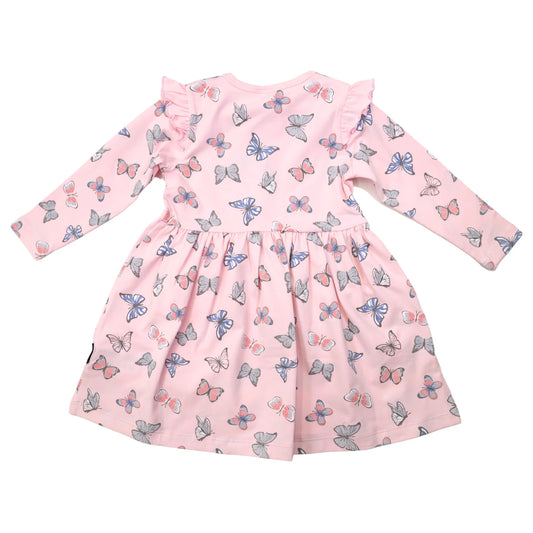 Butterfly Print Long Sleeve Dress - Fairytale Pink