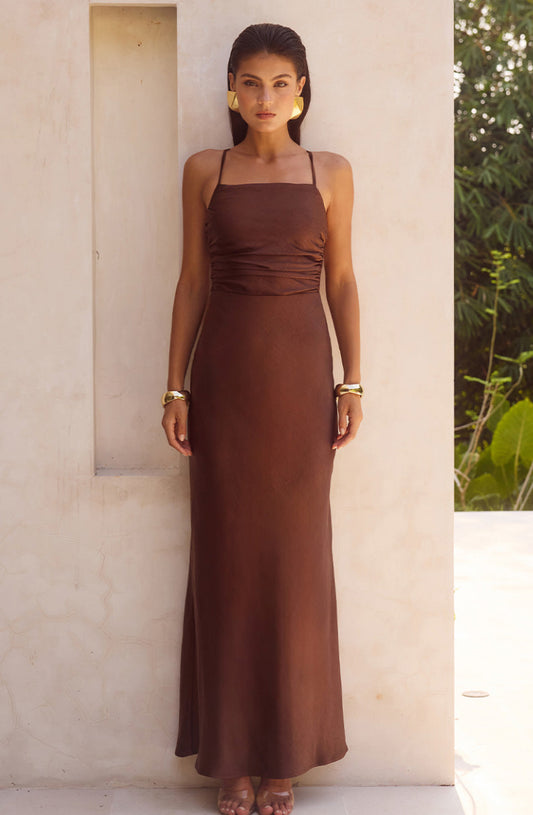 Estelle Cowl Halter Maxi Dress - Bitter Chocolate