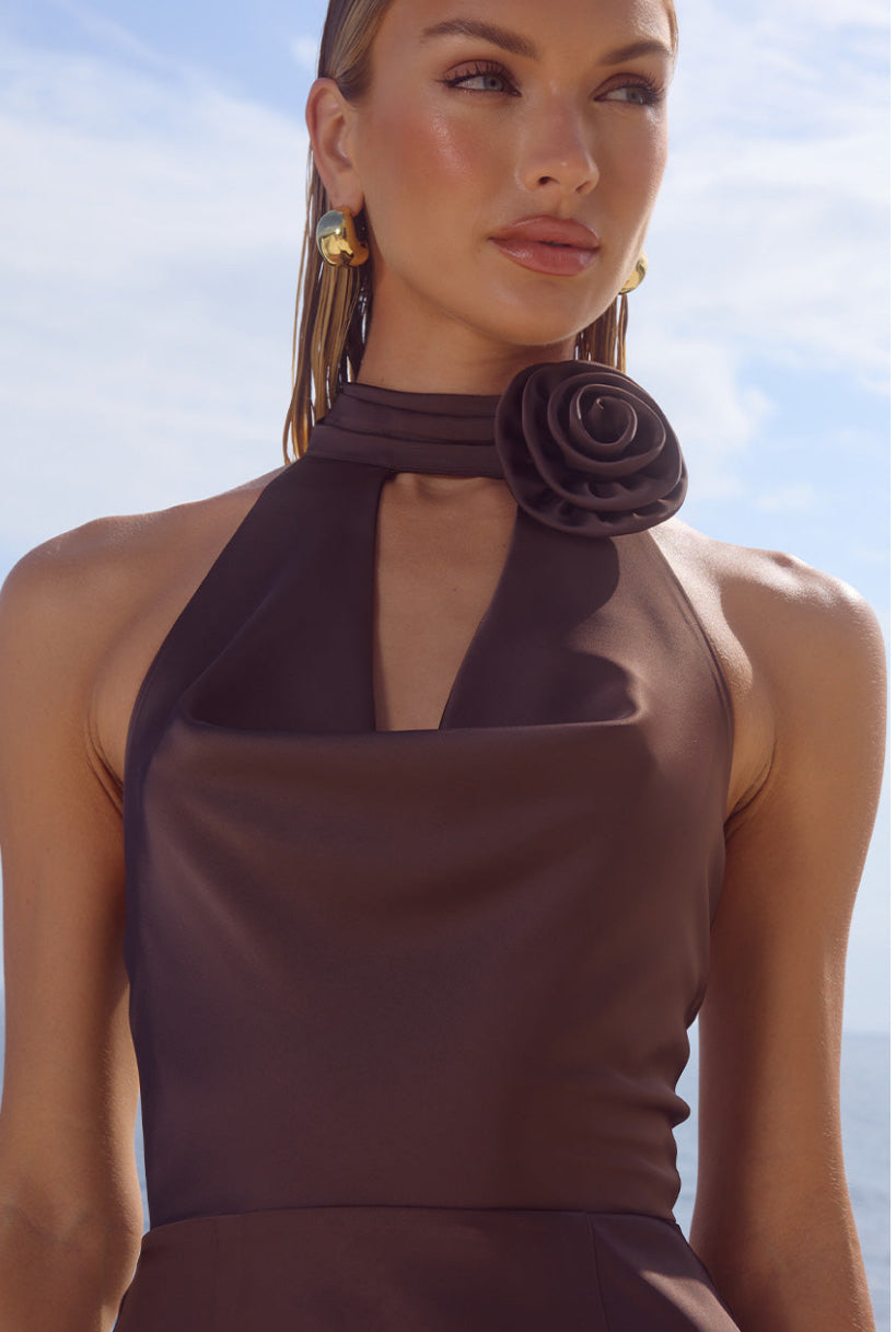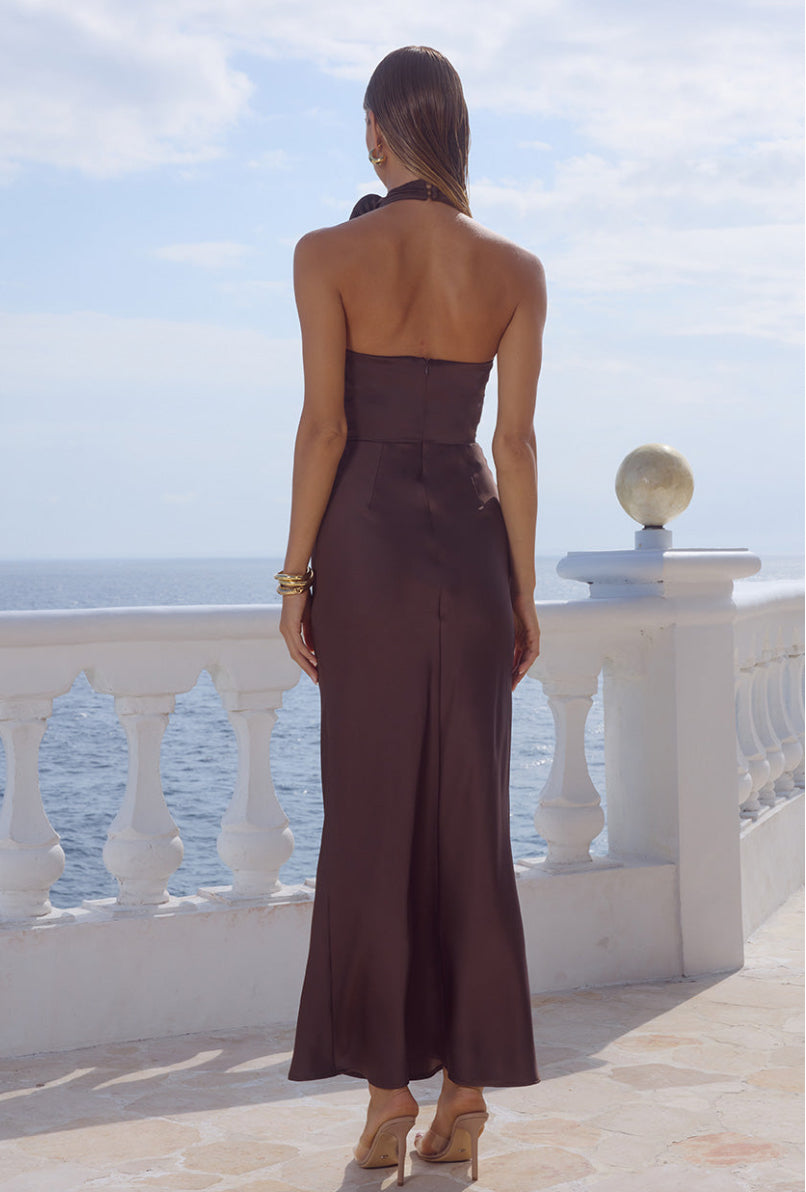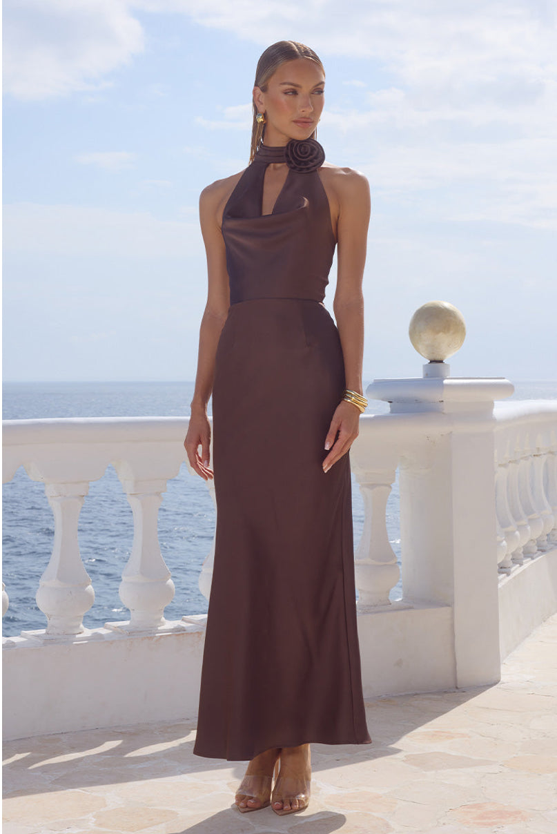 Estelle Cowl Halter Maxi Dress - Bitter Chocolate