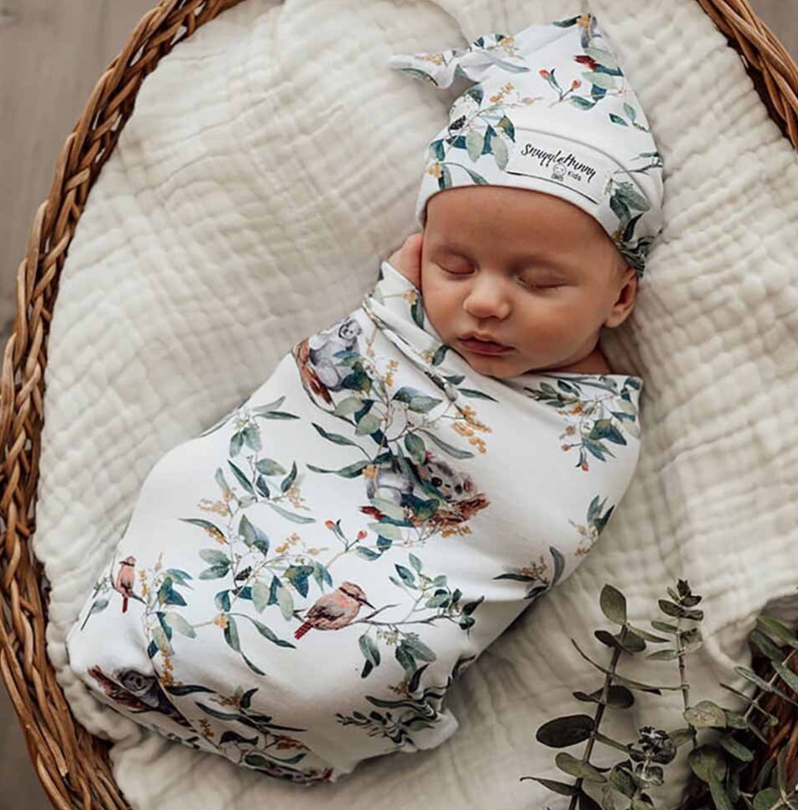 Includes 1 x Eucalypt Snuggle Swaddle and 1 x Eucalypt Beanie