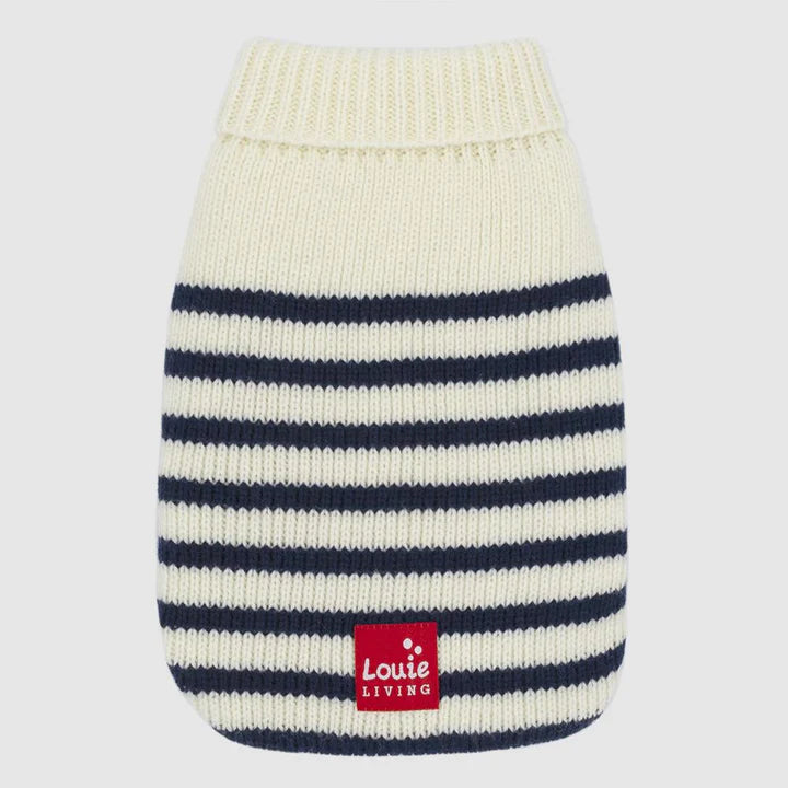 This classic navy and white stripe pull over cardigan is perfect for the discerning pup wanting to impress at the park. Carefully constructed in a stretch knit fabrication that's easy to pull over your furry friends head, the this coat allows your dog freedom of movement and won't inhibit toileting.