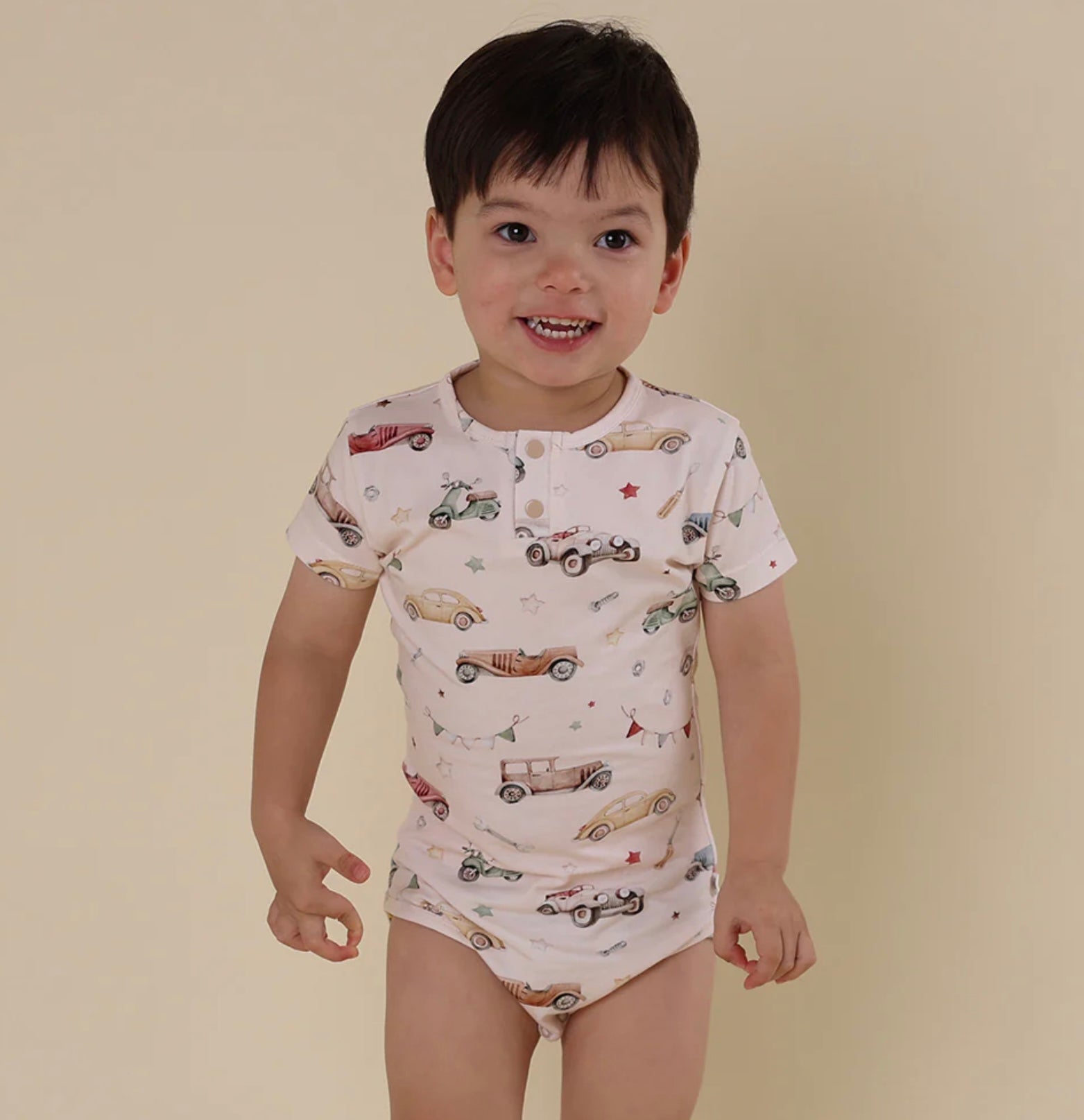 Soft and stretchy, our bodysuits are easy-care and coordinate well with our pants and shorts. Our bodysuits are also really comfortable to sleep in. All Snuggle Hunny clothing is made with GOTS Certified Organic Cotton CU 1182228.