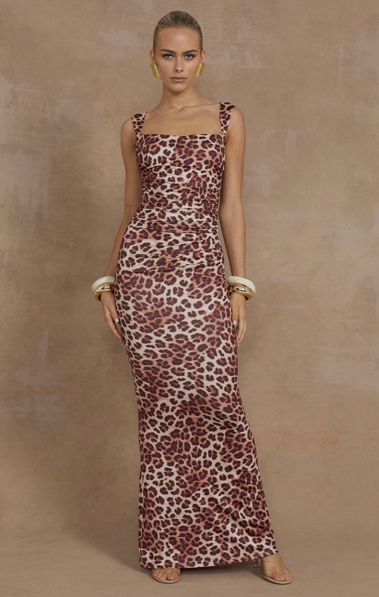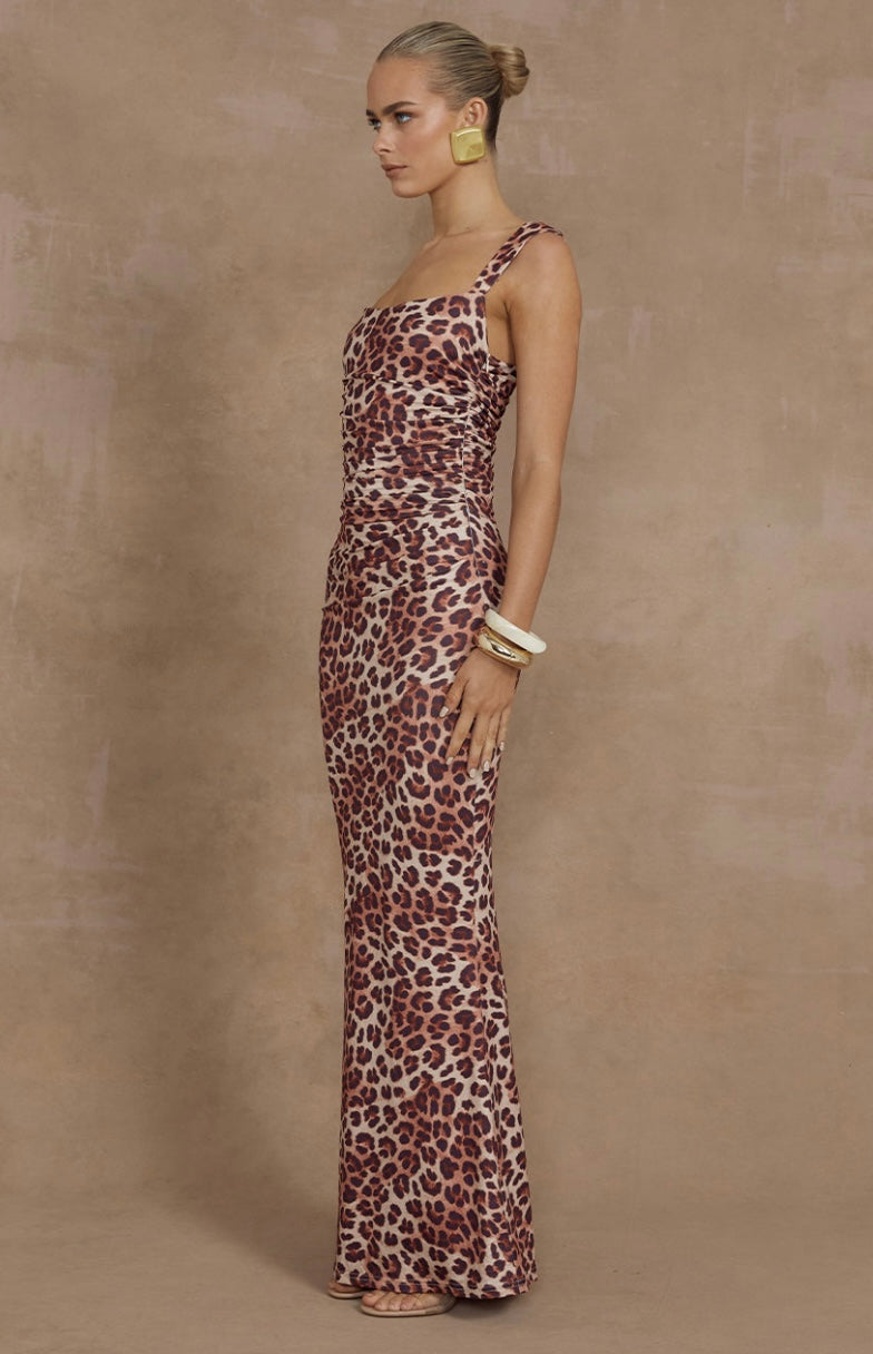 Crafted from a luxe second skin fabric all in a leopard print, our Vivian Maxi Dress is an elegant silhouette with a femme fatale feel.